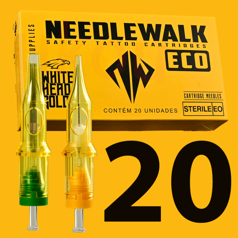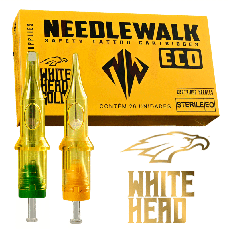 20 Cartuchos White Head – Modelo Needlewalk ECO Calibres: 10 / 0.30 mm 12 / 0.35mm Importante: não mesclamos cartuchos.