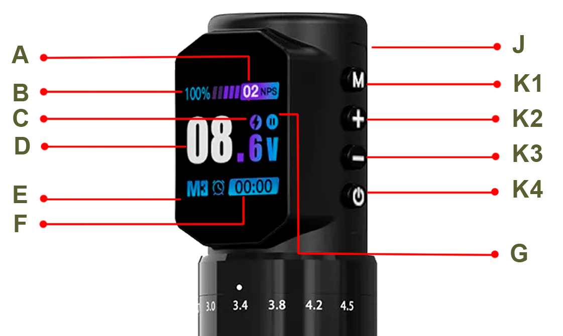 - Stroke (curso):3 mm / 2.7 mm / 3.0 mm / 3.4 mm / 3.8 mm / 4.2 mm / 4.5 mm (sete níveis ajustáveis)
